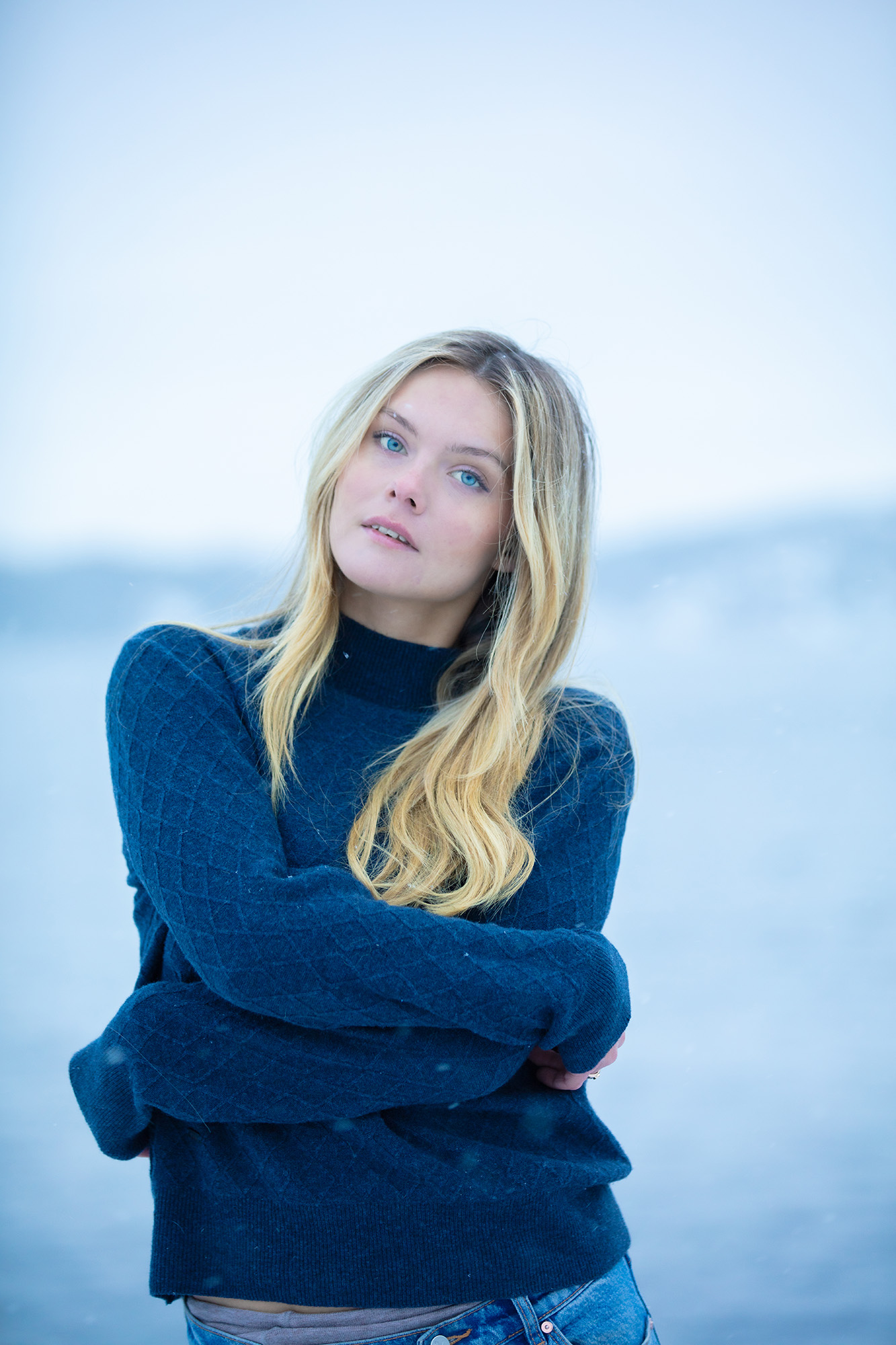Modellen är 1,73 cm lång och bär storlek L på bilden.